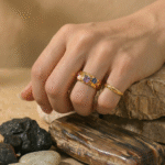 Bold, artistic, and unmistakably luxurious — Aurora Ring is a modern statement jewel that brings color, confidence, and luminous charm to your style.
