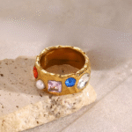 Crafted from premium stainless steel and finished with advanced gold-plating for long-lasting brilliance and lifetime color stability — fully protected by Calvéra’s 5-year warranty, this ring is designed to keep its vibrant sparkle and golden glow for years.