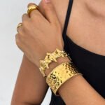 Crafted from premium stainless steel and finished with advanced gold-plating for long-lasting shine and lifetime color stability, protected by Calvéra’s 5-year warranty, this cuff blends powerful presence with enduring elegance.