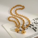 Éclat necklace complements the bracelet with the same graceful simplicity, resting softly along the neckline with a subtle glow that captures attention without overwhelming the look. Together, the two pieces create a balanced and luminous jewelry pairing defined by understated sophistication.