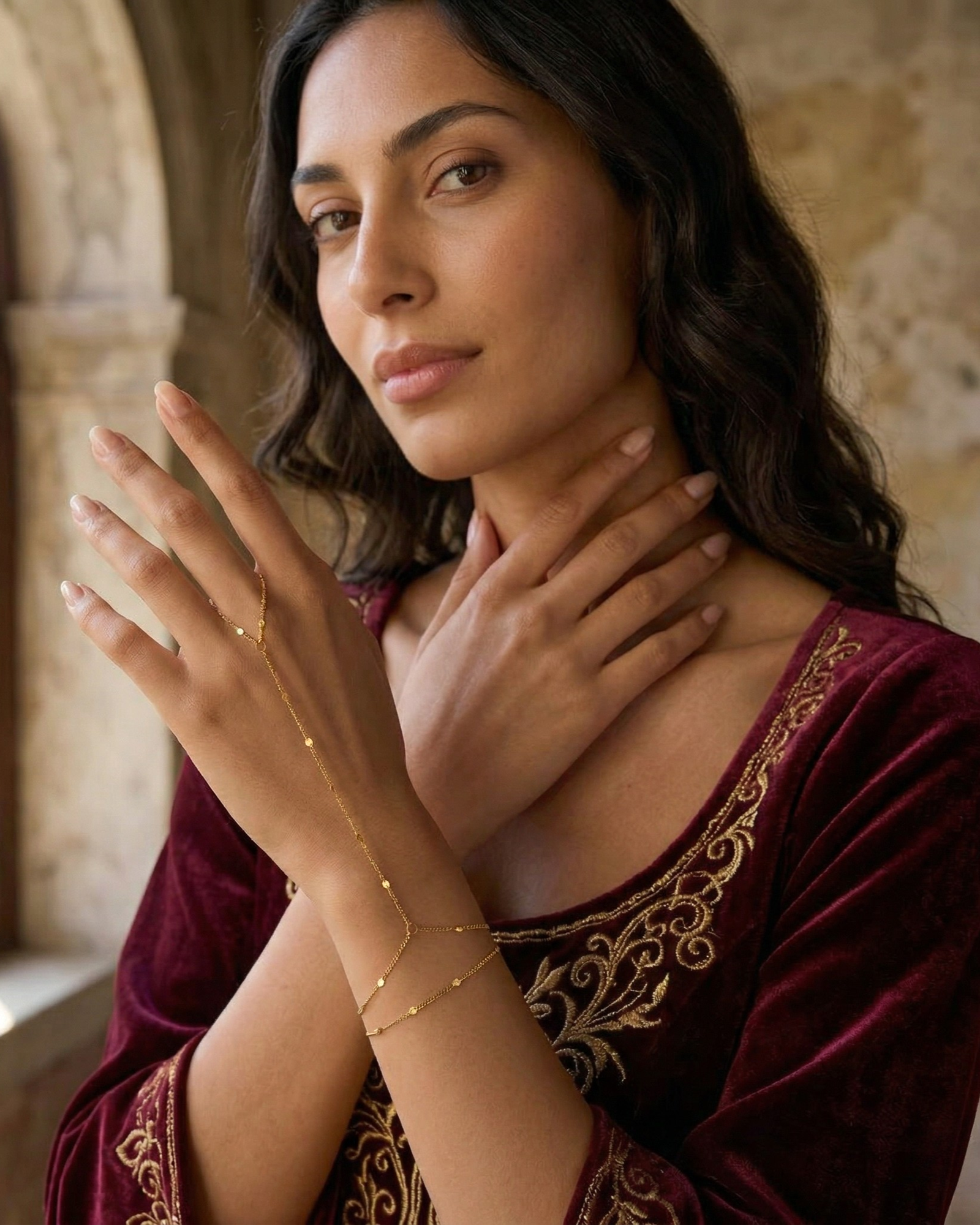 Crafted from premium stainless steel and finished with advanced gold-plating for lifelong brilliance and color stability — fully protected by Calvéra’s 5-year warranty, this hand chain is designed to remain luminous and elegant through years of wear.