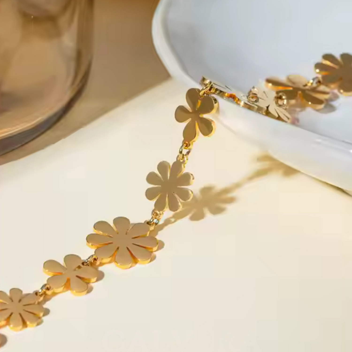 Crafted from premium stainless steel and finished with advanced gold-plating for long-lasting brilliance and lifetime color stability — protected by Calvéra’s 5-Year Warranty, this anklet stays luminous, refined, and unforgettable through years of wear.