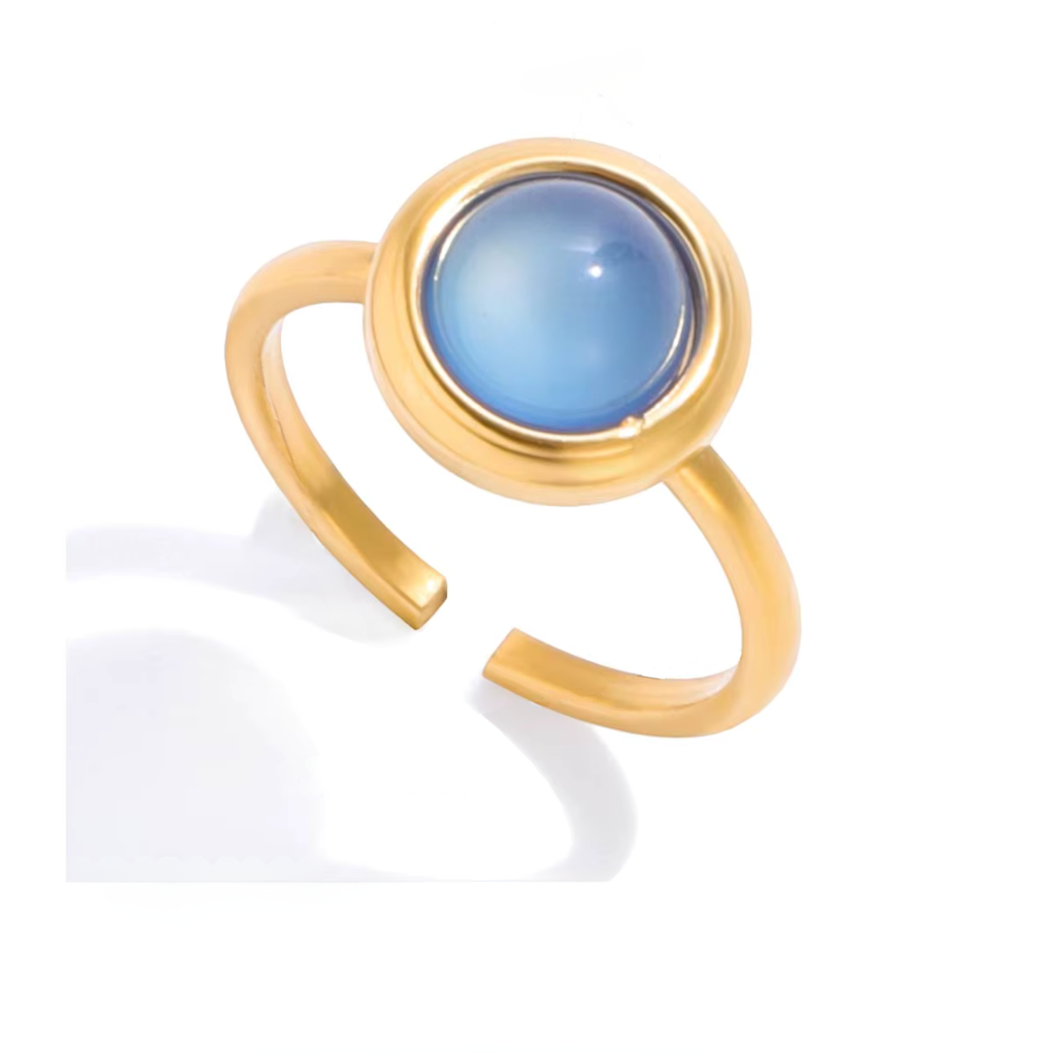 Crafted from premium stainless steel and finished with advanced gold-plating for long-lasting brilliance and lifetime color stability — fully covered by Calvéra’s 5-year warranty, Sfera Blu Ring maintains its glow and vibrant charm through years of wear.